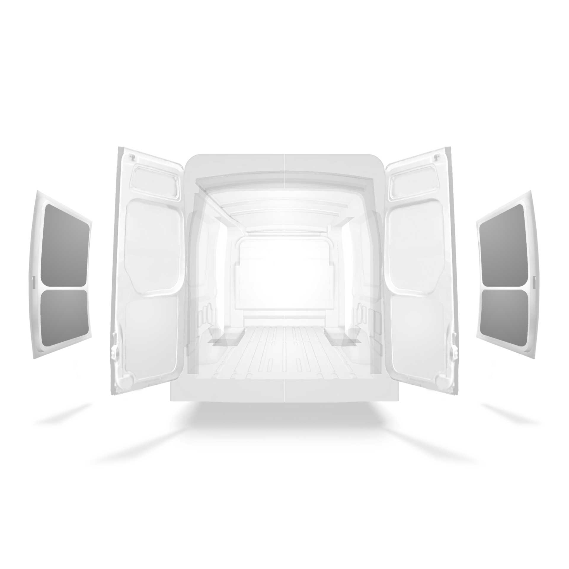 Lekka okładzina drzwi bocznych przeznaczona jest dla modeli: Ford Transit z podwójnymi drzwiami bocznymi. Wszystkie użyte materiały z których wykonane są panele są łatwe do wyczyszczenia, oraz tworzą jasne i przyjemne miejsce pracy.