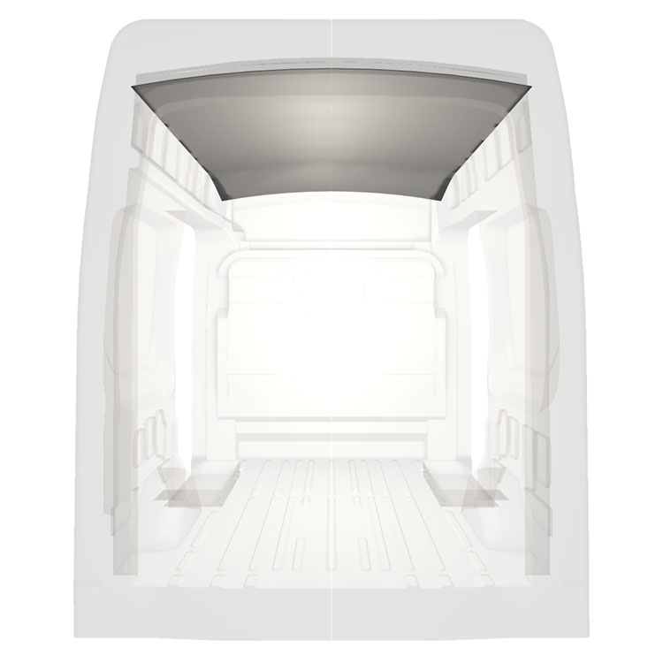 Lekka okładzina dachowa do modeli Ford Transit. Okładzina dachowa tworzy jasne, profesjonalne wykończenie wnętrza oraz przyjemne miejsce pracy.