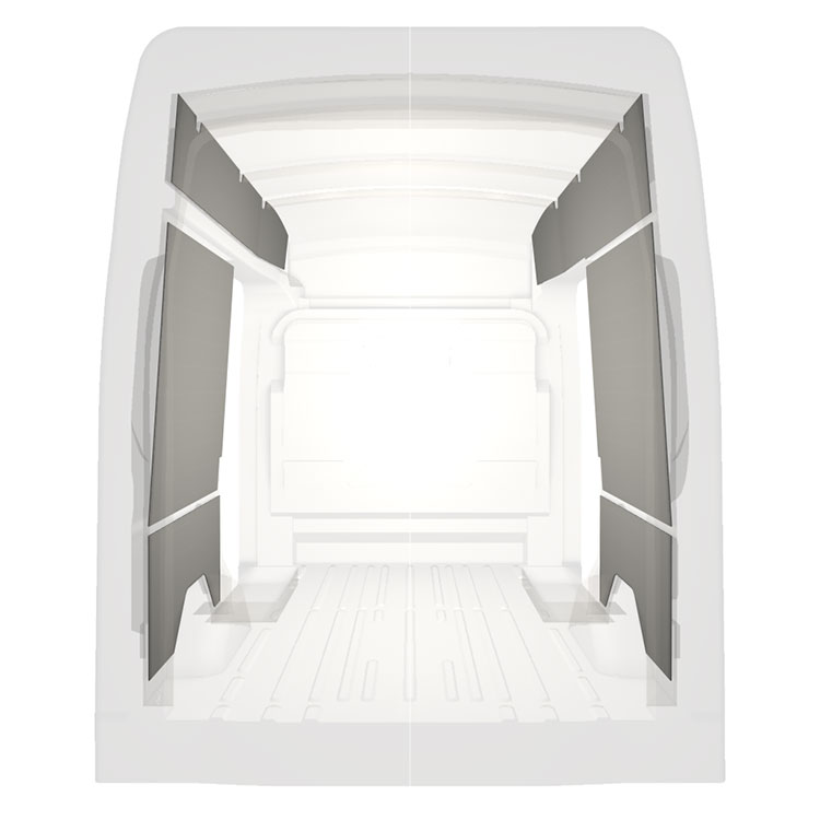 W celu optymalizacji masy, wycięte fabrycznie okładziny do samochodów dostawczych są dopasowane do przestrzeni między belkami pojazdu, co zapewnia ich nieinwazyjność oraz pozwala zmaksymalizować dostępną przestrzeń.