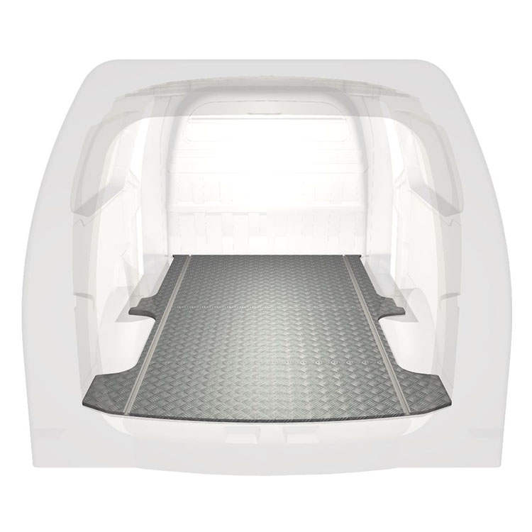 Lekkie i solidne standardowe podłogi do samochodów dostawczych Hyundai H1 wyposażone w antypoślizgową aluminiową blachę ryflowaną i szyny na ładunek (wzdłużne) umożliwiające szybki i bezpieczny montaż systemów regałowych oraz innych akcesoriów.