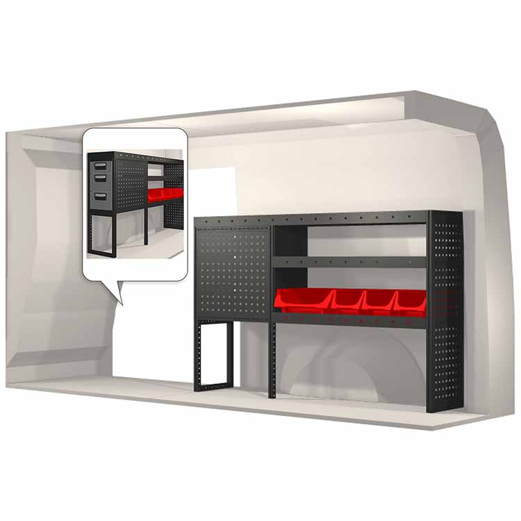Zabudowa została zaprojektowana w sposób zapewniający optymalne dopasowanie do danego modelu atua przy zachowaniu maksimum funkcjonalności i bezpieczeństwa. Stworzona na potrzeby profesjonalistów, charakteryzuje się elastycznymi rozwiązaniami dla użytkowników z różnych branż. Wszystkie półki wyposażone są w wykładzinę gumową, a szuflady w wykładzinę piankową. Do poszczególnych modułów dołączone są niezbędne materiały montażowe.