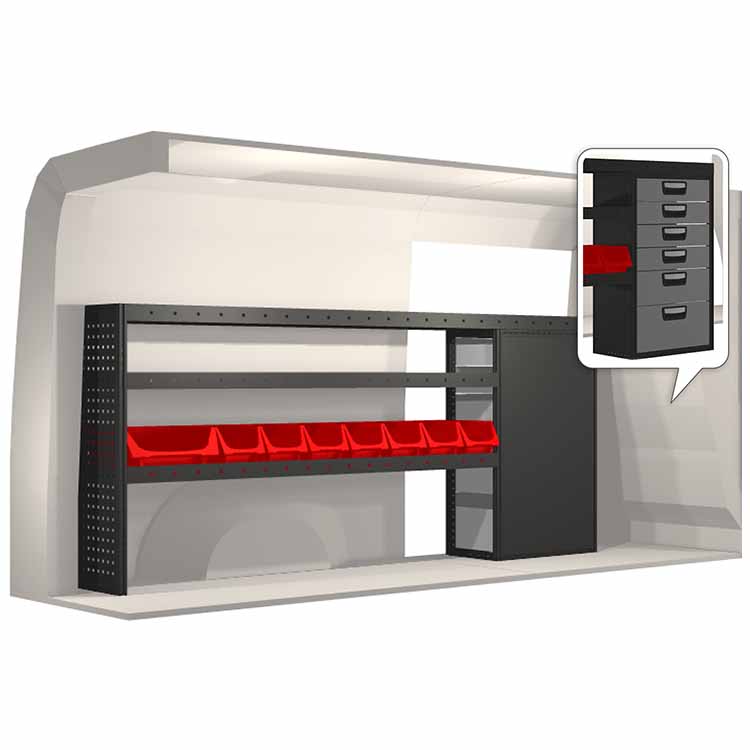Zabudowa została zaprojektowana w sposób zapewniający optymalne dopasowanie do danego modelu atua przy zachowaniu maksimum funkcjonalności i bezpieczeństwa. Stworzona na potrzeby profesjonalistów, charakteryzuje się elastycznymi rozwiązaniami dla użytkowników z różnych branż. Wszystkie półki wyposażone są w wykładzinę gumową, a szuflady w wykładzinę piankową. Do poszczególnych modułów dołączone są niezbędne materiały montażowe.