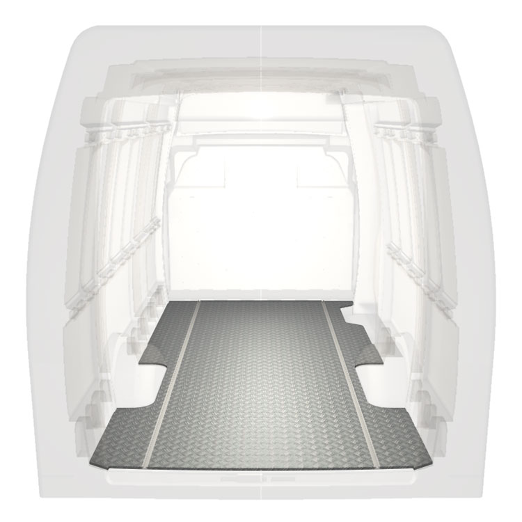 Lekkie i solidne, bardzo długie podłogi do samochodów dostawczych Iveco Daily wyposażone w antypoślizgową aluminiową blachę ryflowaną i szyny na ładunek (wzdłużne) umożliwiające szybki i bezpieczny montaż systemów regałowych oraz innych akcesoriów.