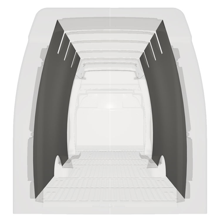 W celu optymalizacji masy, wycięte fabrycznie okładziny do samochodów dostawczych są dopasowane do przestrzeni między belkami pojazdu, co zapewnia ich nieinwazyjność oraz pozwala zmaksymalizować dostępną przestrzeń.