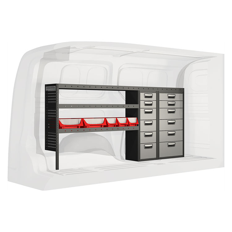 Zabudowa została zaprojektowana w sposób zapewniający optymalne dopasowanie do danego modelu atua przy zachowaniu maksimum funkcjonalności i bezpieczeństwa. Stworzona na potrzeby profesjonalistów, charakteryzuje się elastycznymi rozwiązaniami dla użytkowników z różnych branż. Wszystkie półki wyposażone są w wykładzinę gumową, a szuflady w wykładzinę piankową.
