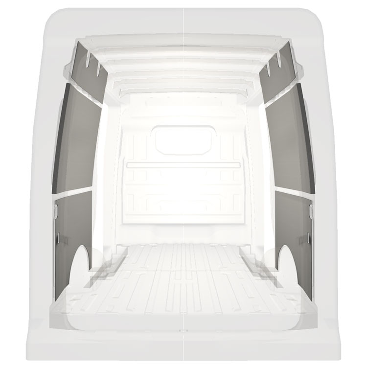 W celu optymalizacji masy, wycięte fabrycznie okładziny do samochodów dostawczych są dopasowane do przestrzeni między belkami pojazdu, co zapewnia ich nieinwazyjność oraz pozwala zmaksymalizować dostępną przestrzeń.