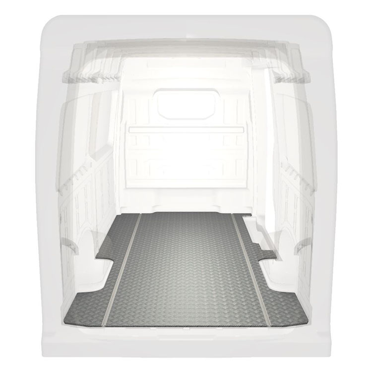 Lekkie i solidne, bardzo długie podłogi do samochodów dostawczych Volkswagen Crafter / MAN TGE wyposażone w antypoślizgową aluminiową blachę ryflowaną i szyny na ładunek (wzdłużne) umożliwiające szybki i bezpieczny montaż systemów regałowych oraz innych akcesoriów.