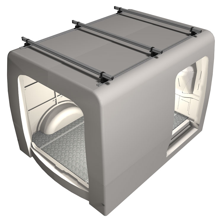 To optimize weight, the bars are made from high-strength aluminum. All brackets are made from powder-coated galvanized steel and finishing details like end caps are made from plastic. The roof bars' integrated T-track (M8) can be used for quick and easy installation of lighting brackets, load stops, lashing and other accessories.