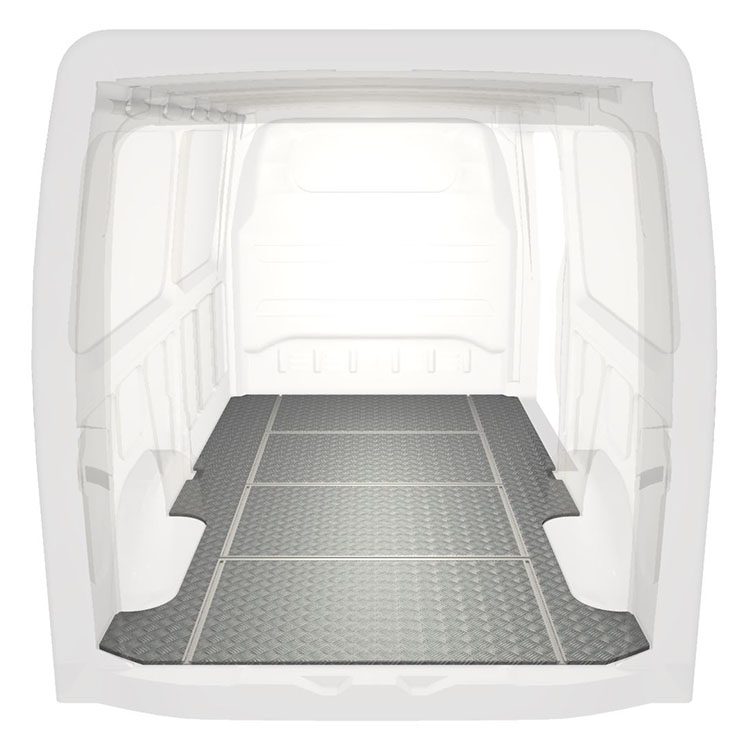 Lekkie i solidne podłogi z szynami poprzecznymi do samochodów dostawczych Mercedes Sprinter wyposażone w antypoślizgową aluminiową blachę ryflowaną i szyny na ładunek (wzdłużne oraz poprzeczne) umożliwiające szybki i bezpieczny montaż systemów regałowych oraz innych akcesoriów.