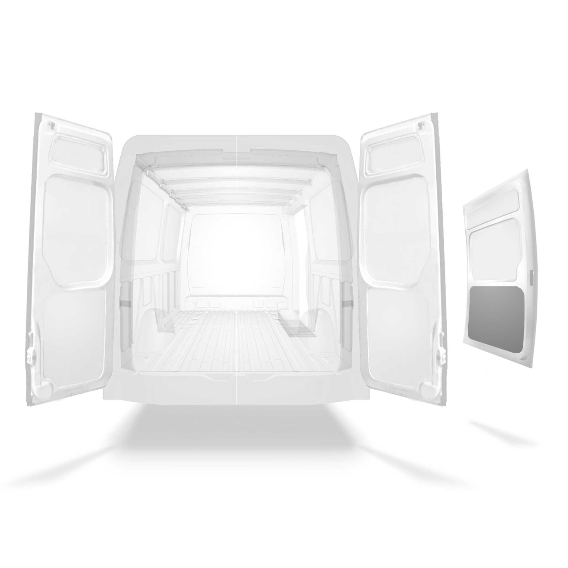 Lekka okładzina drzwi bocznych przeznaczona jest dla modeli: Mercedes Sprinter z drzwiami bocznymi po prawej stronie. Okładzina zmniejsza zużycie wnętrza, co pomaga zachować wartość końcową samochodu.