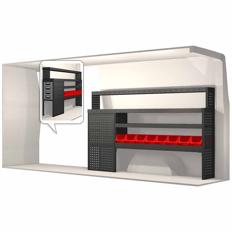 Zabudowa została zaprojektowana w sposób zapewniający optymalne dopasowanie do danego modelu atua przy zachowaniu maksimum funkcjonalności i bezpieczeństwa. Stworzona na potrzeby profesjonalistów, charakteryzuje się elastycznymi rozwiązaniami dla użytkowników z różnych branż. Wszystkie półki wyposażone są w wykładzinę gumową, a szuflady w wykładzinę piankową. Do poszczególnych modułów dołączone są niezbędne materiały montażowe.