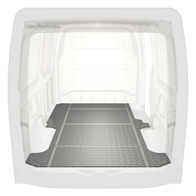 Lekkie i solidne podłogi z szynami poprzecznymi do samochodów dostawczych Mercedes Sprinter wyposażone w antypoślizgową aluminiową blachę ryflowaną i szyny na ładunek (wzdłużne oraz poprzeczne) umożliwiające szybki i bezpieczny montaż systemów regałowych oraz innych akcesoriów.