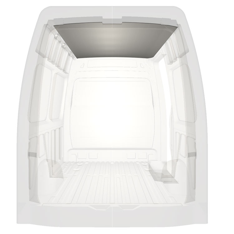 Lekka okładzina dachowa do modeli Mercedes Sprinter. Okładzina dachowa tworzy jasne, profesjonalne wykończenie wnętrza oraz przyjemne miejsce pracy.