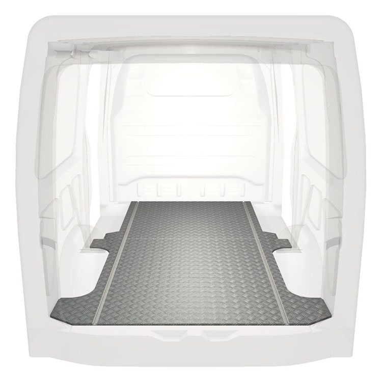Lekkie i solidne standardowe podłogi do samochodów dostawczych Mercedes Sprinter wyposażone w antypoślizgową aluminiową blachę ryflowaną i szyny na ładunek (wzdłużne) umożliwiające szybki i bezpieczny montaż systemów regałowych oraz innych akcesoriów.
