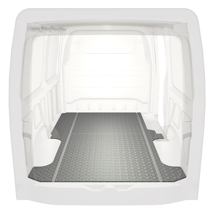 Lekkie i solidne standardowe podłogi do samochodów dostawczych Mercedes Sprinter wyposażone w antypoślizgową aluminiową blachę ryflowaną i szyny na ładunek (wzdłużne) umożliwiające szybki i bezpieczny montaż systemów regałowych oraz innych akcesoriów.