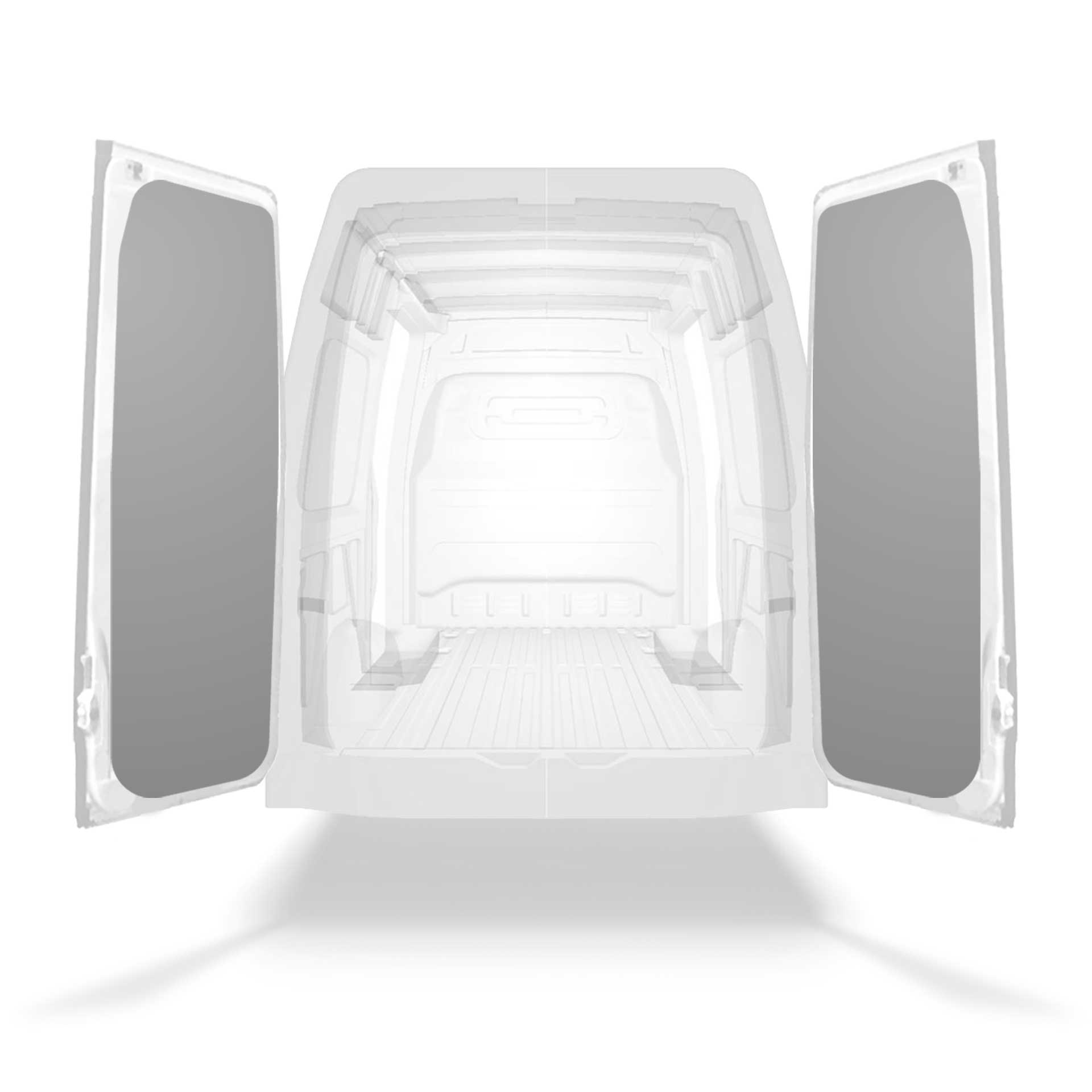 Lekka, pełna okładzina tylnych drzwi do modeli Mercedes Sprinter z bliźniaczymi drzwiami. Zaprojektowane do profesjonalnego wykończenia wnętrza okładziny drzwi chronią pojazd dostawczy i są łatwe do czyszczenia.