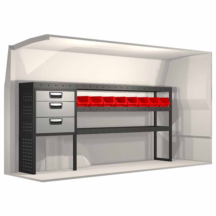 Zabudowa została zaprojektowana w sposób zapewniający optymalne dopasowanie do danego modelu atua przy zachowaniu maksimum funkcjonalności i bezpieczeństwa. Stworzona na potrzeby profesjonalistów, charakteryzuje się elastycznymi rozwiązaniami dla użytkowników z różnych branż. Wszystkie półki wyposażone są w wykładzinę gumową, a szuflady w wykładzinę piankową. Do poszczególnych modułów dołączone są niezbędne materiały montażowe.