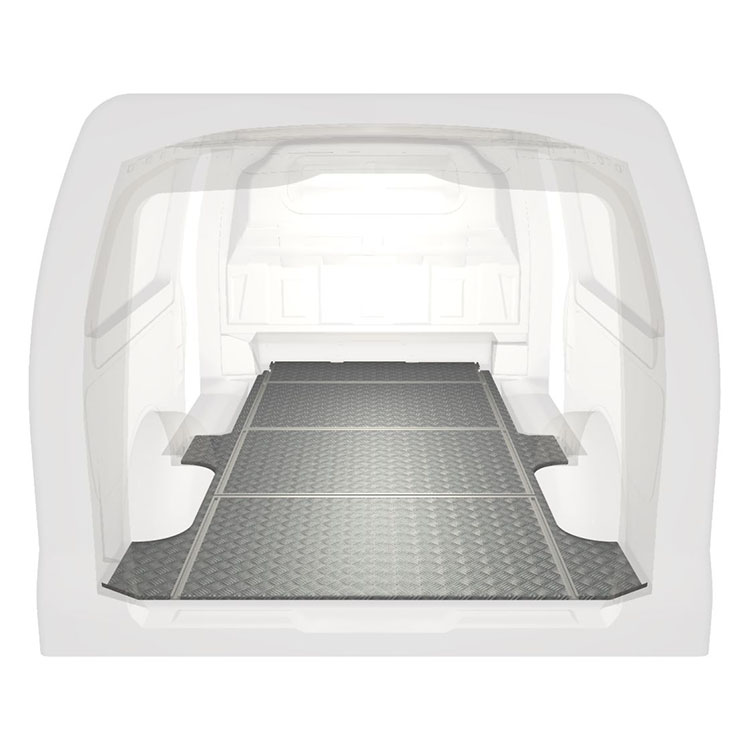 Lekkie i solidne podłogi z szynami poprzecznymi do samochodów dostawczych Mercedes Vito wyposażone w antypoślizgową aluminiową blachę ryflowaną i szyny na ładunek (wzdłużne oraz poprzeczne) umożliwiające szybki i bezpieczny montaż systemów regałowych oraz innych akcesoriów.