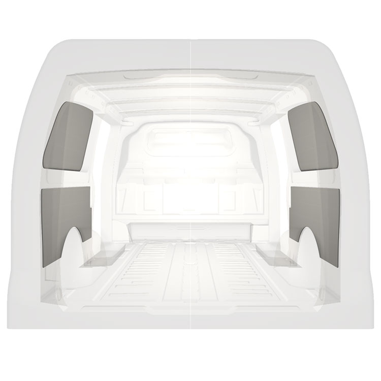 W celu optymalizacji masy, wycięte fabrycznie okładziny do samochodów dostawczych są dopasowane do przestrzeni między belkami pojazdu, co zapewnia ich nieinwazyjność oraz pozwala zmaksymalizować dostępną przestrzeń.