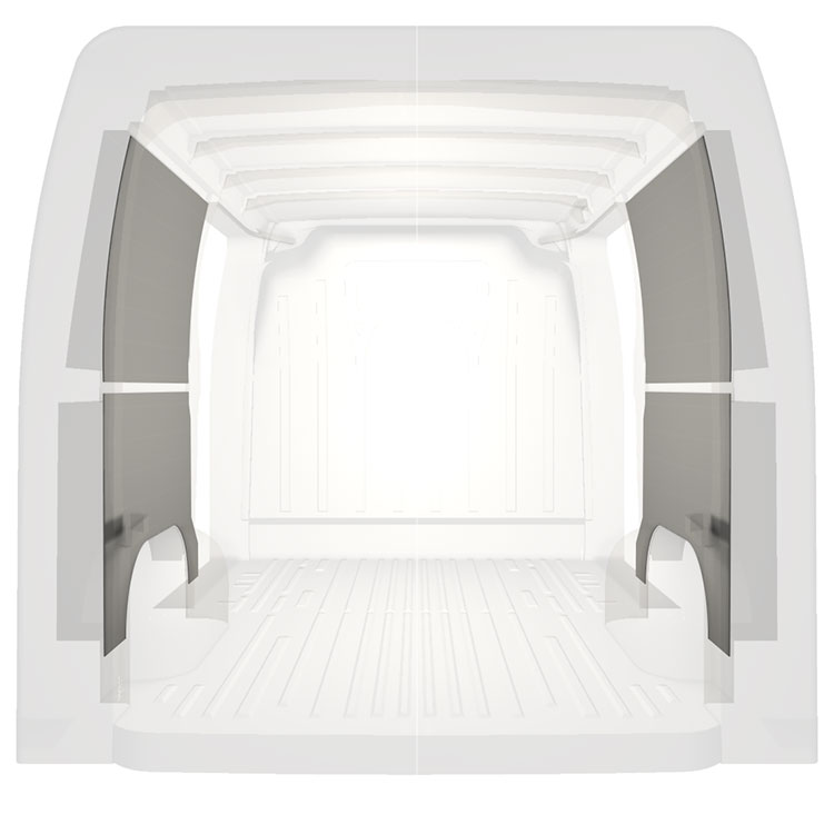 W celu optymalizacji masy, wycięte fabrycznie okładziny do samochodów dostawczych są dopasowane do przestrzeni między belkami pojazdu, co zapewnia ich nieinwazyjność oraz pozwala zmaksymalizować dostępną przestrzeń.