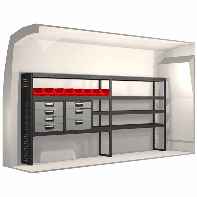 Zabudowa została zaprojektowana w sposób zapewniający optymalne dopasowanie do danego modelu atua przy zachowaniu maksimum funkcjonalności i bezpieczeństwa. Stworzona na potrzeby profesjonalistów, charakteryzuje się elastycznymi rozwiązaniami dla użytkowników z różnych branż. Wszystkie półki wyposażone są w wykładzinę gumową, a szuflady w wykładzinę piankową. Do poszczególnych modułów dołączone są niezbędne materiały montażowe.