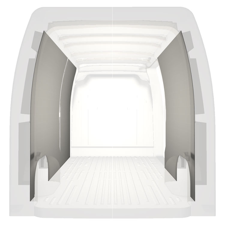 W celu optymalizacji masy, wycięte fabrycznie okładziny do samochodów dostawczych są dopasowane do przestrzeni między belkami pojazdu, co zapewnia ich nieinwazyjność oraz pozwala zmaksymalizować dostępną przestrzeń.
