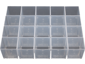 The inserts allow you to divide low Mobile-Boxes into sections to permit better organization of smaller items such as keys and electronic equipment. Mobil-Boxes have space for up to 25 or 40 inserts, espectively. Inserts are supplied in sets of 20.