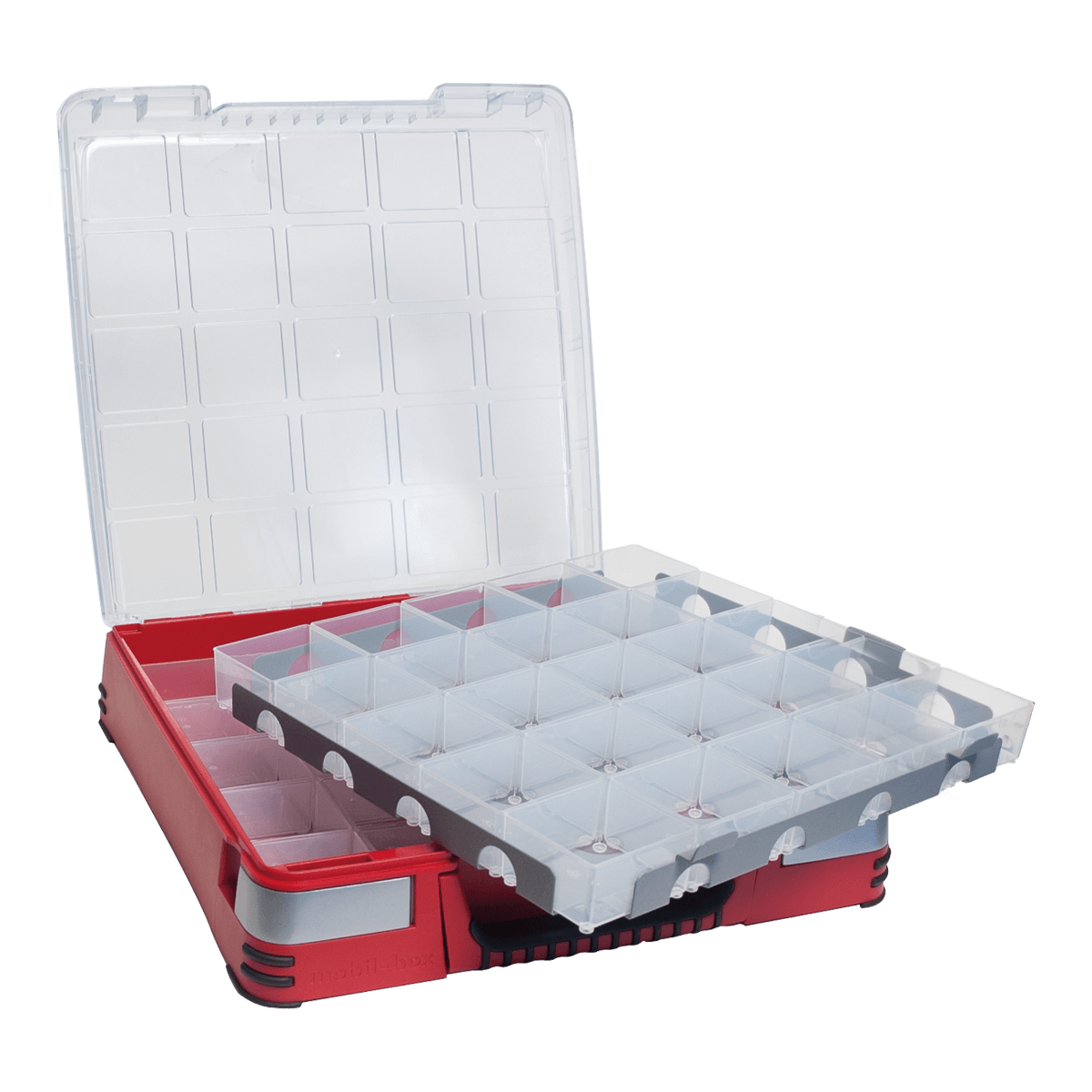 50 inserts and steel plate divider. Mobil-Box is not included.