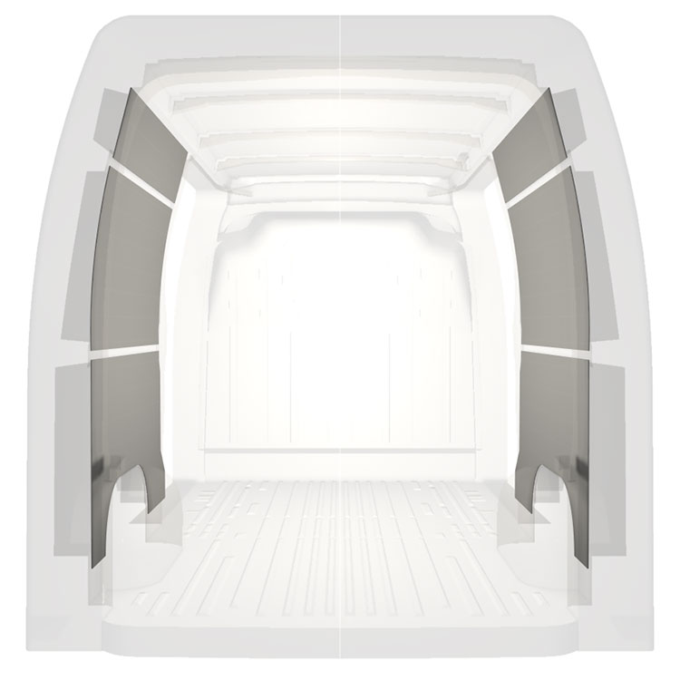 W celu optymalizacji masy, wycięte fabrycznie okładziny do samochodów dostawczych są dopasowane do przestrzeni między belkami pojazdu, co zapewnia ich nieinwazyjność oraz pozwala zmaksymalizować dostępną przestrzeń.