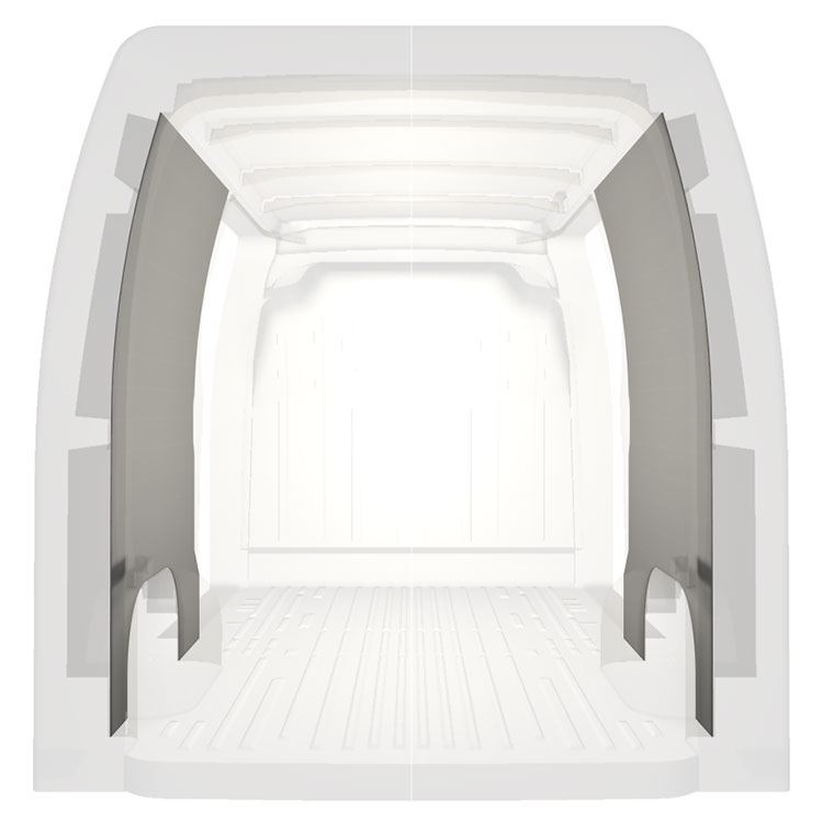 W celu optymalizacji masy, wycięte fabrycznie okładziny do samochodów dostawczych są dopasowane do przestrzeni między belkami pojazdu, co zapewnia ich nieinwazyjność oraz pozwala zmaksymalizować dostępną przestrzeń.