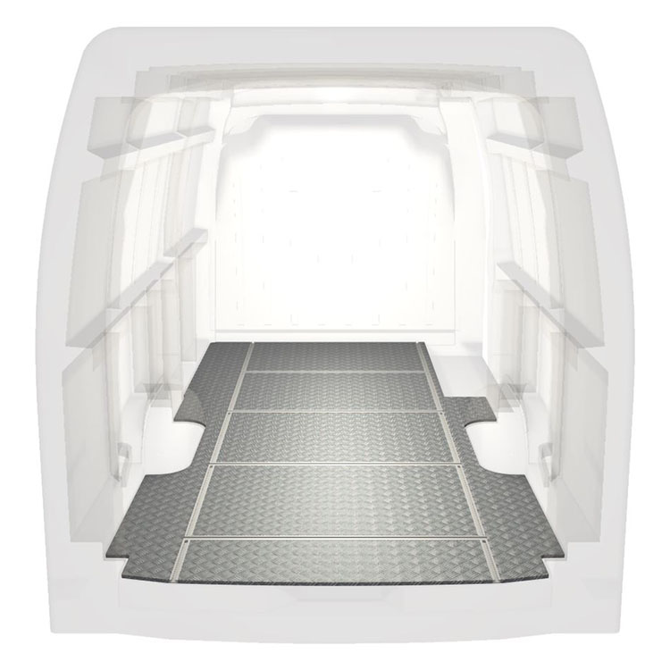 Lekkie i solidne podłogi z szynami poprzecznymi do samochodów dostawczych Renault Master / Opel Movano / Nissan NV400 wyposażone w antypoślizgową aluminiową blachę ryflowaną i szyny na ładunek (wzdłużne oraz poprzeczne) umożliwiające szybki i bezpieczny montaż systemów regałowych oraz innych akcesoriów.