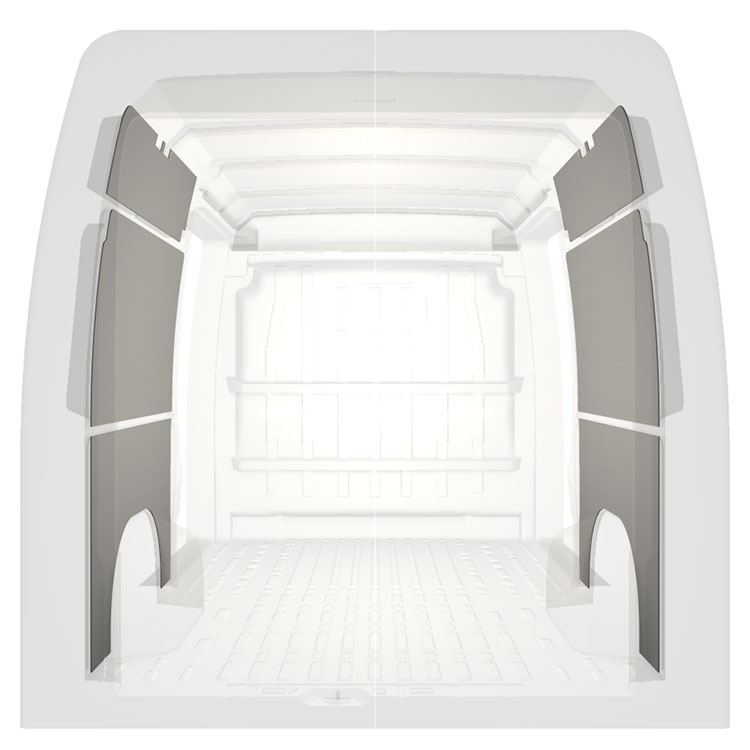 W celu optymalizacji masy, wycięte fabrycznie okładziny do samochodów dostawczych są dopasowane do przestrzeni między belkami pojazdu, co zapewnia ich nieinwazyjność oraz pozwala zmaksymalizować dostępną przestrzeń.