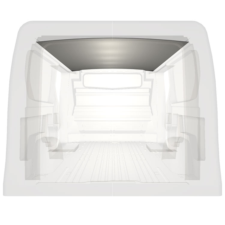 Lekka okładzina dachowa do modeli Renault Trafic / Opel Vivaro / Fiat Talento / Nissan NV300. Okładzina dachowa tworzy jasne, profesjonalne wykończenie wnętrza oraz przyjemne miejsce pracy.