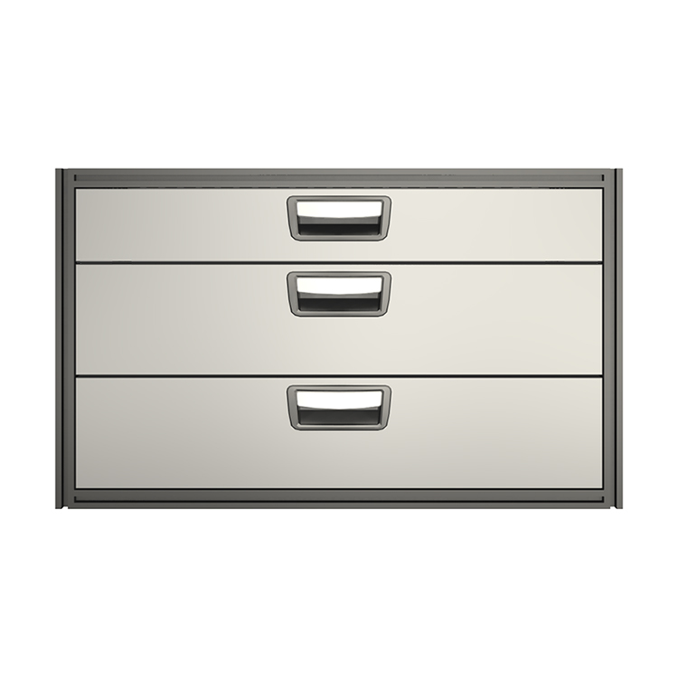 Each drawer is fitted with ball bearing runners as standard, and has a load capacity of 30 kg with a maximum of 100 kg per drawer unit. The drawers are fully extendable and equipped with stoppers. For maximum utility, the drawer unit can be equipped with accessories such as foam plastic liners, plastic inserts and dividers. To help optimize the weight, cover panels and tool boards are optional.