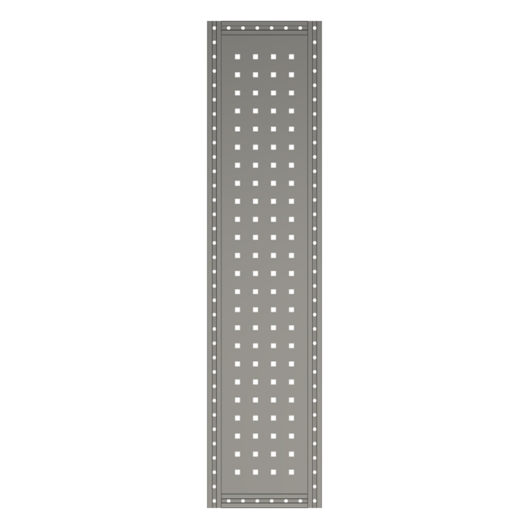 Shelf end supports with tool board are available in several heights and depths. The T-tracks integrated in the profiles are used for securing cargo, attaching accessories and for versatile surface mounting.