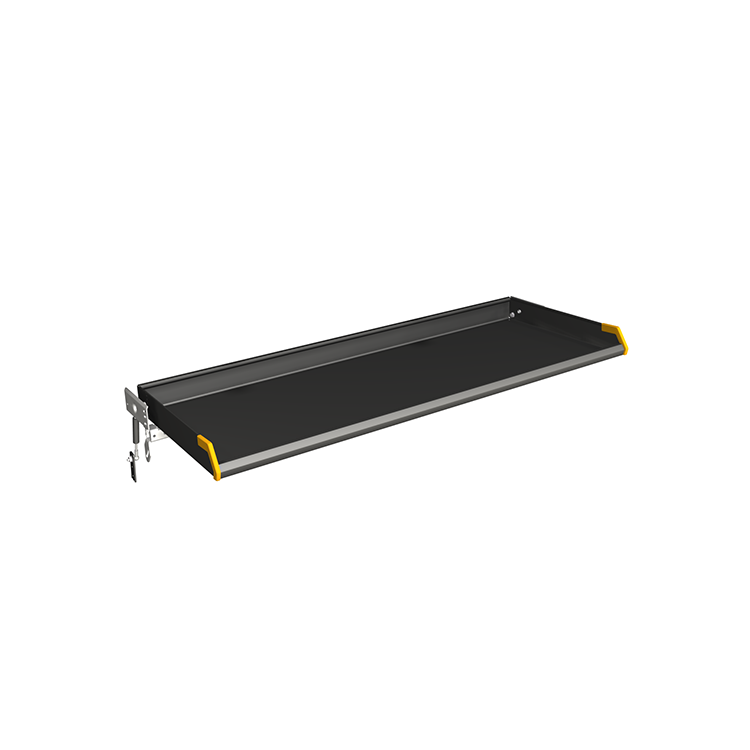 The folding shelves are available in several lengths to fit different vehicle models perfectly. To make them easy to operate, the shelves are equipped with gas struts as standard. The design with higher side and rear edges means packages stay securely on the shelves when the vehicle is being driven. The lower, specially designed, front edge facilitates unloading. Each shelf has a load capacity of 120 kg, and can be mounted with an incline if required.