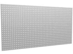 The tool board is designed for mounting on a wall. The metal plate is punched with 9 mm holes at 34 mm pitch spacing. With the addition of tool hooks it provides a flexible system for tool storage, etc.