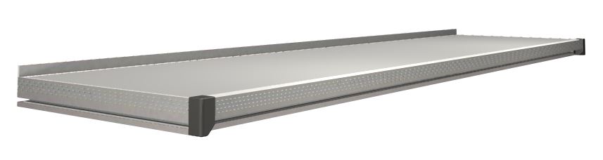 Aluminiowy profil krawędziowy polepsza wytrzymałość i nadaje blatu roboczemu, zgrabne wykończenie. Podwyższona krawędź tylna zapobiega spadaniu przedmiotów poza blat. Wbudowana w aluminiowe profile prowadnica teowa ułatwia instalację.