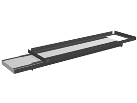Pull-out worktop with steel edging, designed for wheel arch frames (part no. 59560-03, 59561-03, 59562-03, 59563-03). The worktop is lockable and can be extended 550 mm. It is 185 mm wide and suitable for mounting a vice with a jaw width of 120 mm.