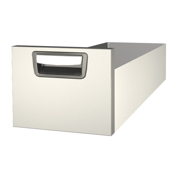 Solidna, długa szuflada do montażu w ramie zespołu szuflad. Wykonana z aluminium, jest wyposażona standardowo w łożyska kulkowe: połączenie stałych i ruchomych prowadnic czyni szufladę stabilną i łatwą w użytkowaniu.