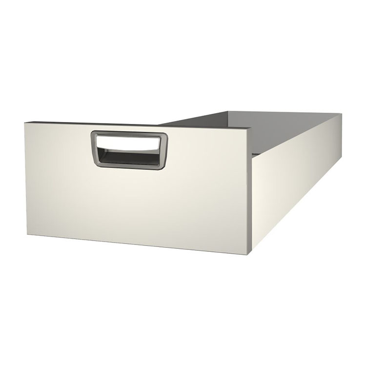 Solidna, długa szuflada do montażu w ramie zespołu szuflad. Wykonana z aluminium, jest wyposażona standardowo w łożyska kulkowe: połączenie stałych i ruchomych prowadnic czyni szufladę stabilną i łatwą w użytkowaniu.