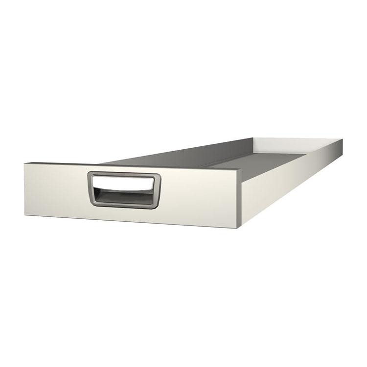 Solidna, długa szuflada do montażu w ramie zespołu szuflad. Wykonana z aluminium, jest wyposażona standardowo w łożyska kulkowe: połączenie stałych i ruchomych prowadnic czyni szufladę stabilną i łatwą w użytkowaniu.