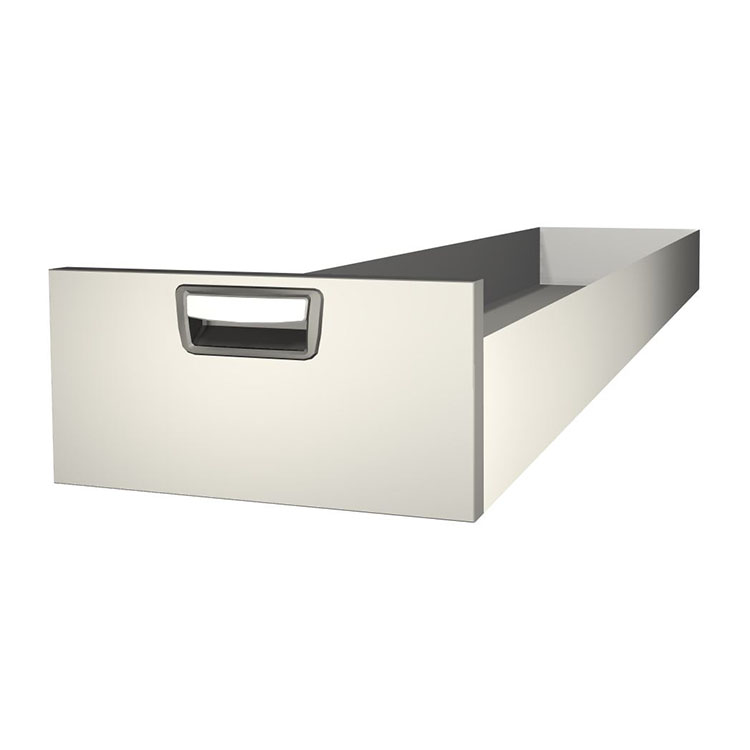Solidna, długa szuflada do montażu w ramie zespołu szuflad. Wykonana z aluminium, jest wyposażona standardowo w łożyska kulkowe: połączenie stałych i ruchomych prowadnic czyni szufladę stabilną i łatwą w użytkowaniu.