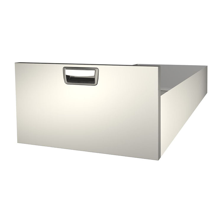 Solidna, długa szuflada do montażu w ramie zespołu szuflad. Wykonana z aluminium, jest wyposażona standardowo w łożyska kulkowe: połączenie stałych i ruchomych prowadnic czyni szufladę stabilną i łatwą w użytkowaniu.