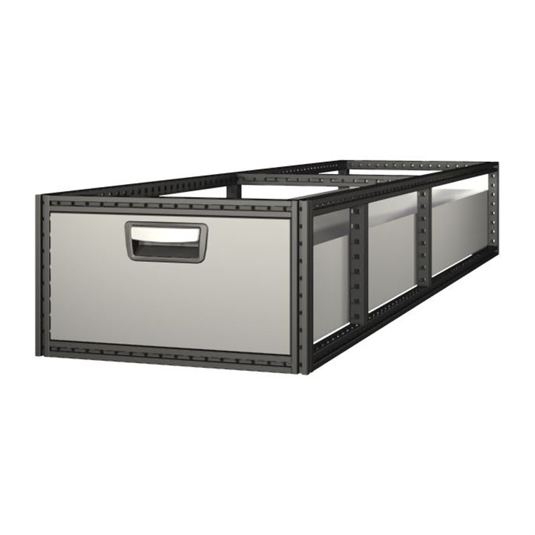 Zespoły długich szuflad składają się z ramy wykonanej z ultrawytrzymałej stali oraz aluminiowych szuflad. Szuflady są wyposażone standardowo w łożyska kulkowe: połączenie stałych i ruchomych prowadnic czyni szufladę stabilną i łatwą w użytkowaniu.