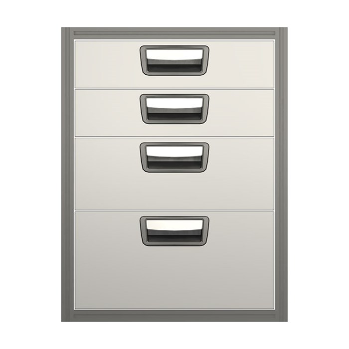 Każda szuflada jest standardowo wyposażona w prowadnice kulkowe i ma ładowność 30 kg, przy maksymalnym obciążeniu 100 kg na moduł szufladowy. Szuflady są w pełni wysuwane i wyposażone w blokady. Dla maksymalnej funkcjonalności moduł szufladowy może być wyposażony w akcesoria, takie jak wkłady z pianki, plastikowe wkładki i przegrody. W celu optymalizacji wagi dostępne są opcjonalnie panele osłonowe i tablice narzędziowe.
