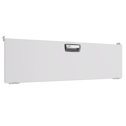 Drop down doors are fitted with gas springs on both sides that ensure smooth opening and closing. The opening angle is 90 degrees. The door pull has a built-in catch that prevents it from opening while the vehicle is in motion. The door is also suitable for wheel arch frames fitted with bench tops. When fitting doors between two shelf end supports, a mounting frame must be used.