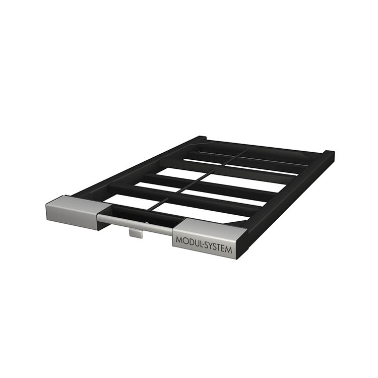 Lightweight and robust base frame made from ultra-high strength steel, with a front in anodized aluminum. A loading platform can be mounted to the base frame for increased functionality.