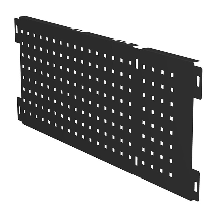 Płyta narzędziowa do zespołów długich szuflad. Chroni szufladę, zapewniając jednocześnie estetyczne wykończenie. W płycie narzędziowej wybite są otwory wielkości 9 mm, w odstępach co 34 mm, umożliwiające mocowanie uchwytów na narzędzia oraz innych akcesoriów. Montaż śrubami (niedołączone).