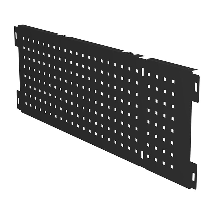 Płyta narzędziowa do zespołów długich szuflad. Chroni szufladę, zapewniając jednocześnie estetyczne wykończenie. W płycie narzędziowej wybite są otwory wielkości 9 mm, w odstępach co 34 mm, umożliwiające mocowanie uchwytów na narzędzia oraz innych akcesoriów. Montaż śrubami (niedołączone).